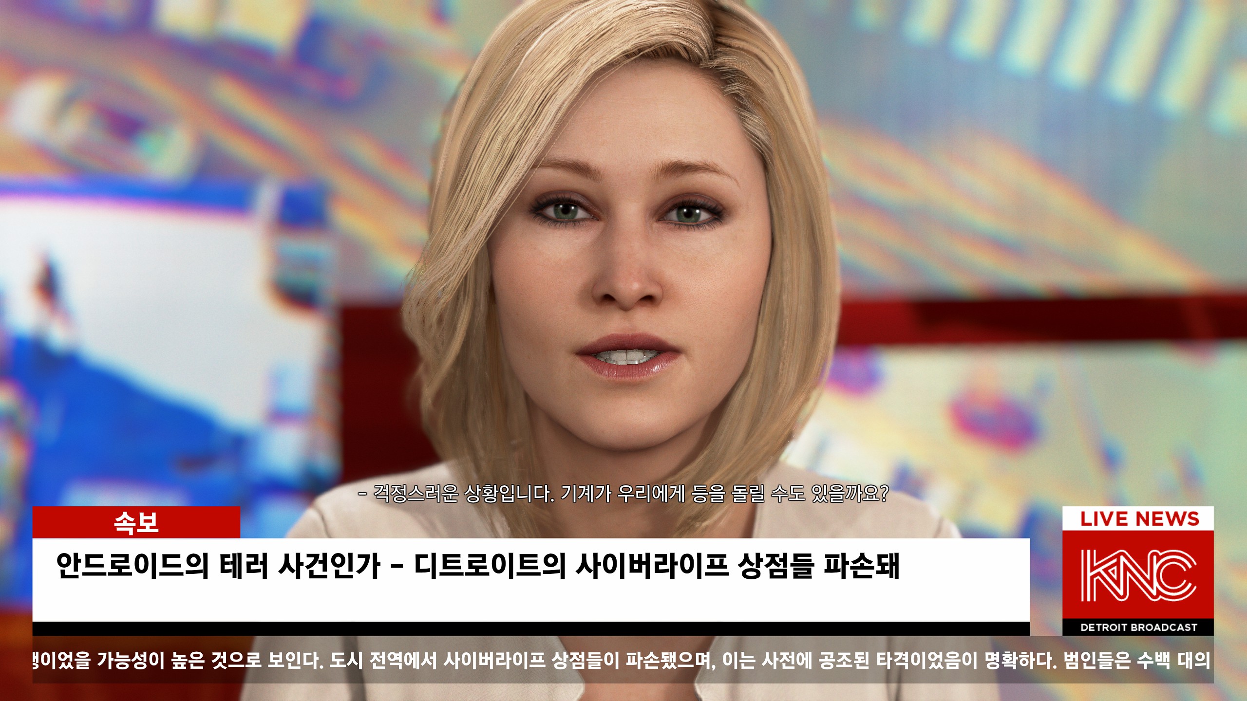 주역 세 명을 모두 살리고 싶었기 때문에 평화 루트로 진입하였는데, 결국 안드로이드들이 먼저 인간들에게 도움을 요청하고 인간들이 반응하는 방식으로 스토리가 진행되었음. 이 과정이 비참하기보다는 굉장히 서구적으로 희망차다고 생각했음. 작위적인 연출이 들어갈 수 밖에 없었지만 우리나라에서도 유행하는 K삘 보다는 뮤지컬 레미제라블에 가깝다는 느낌.