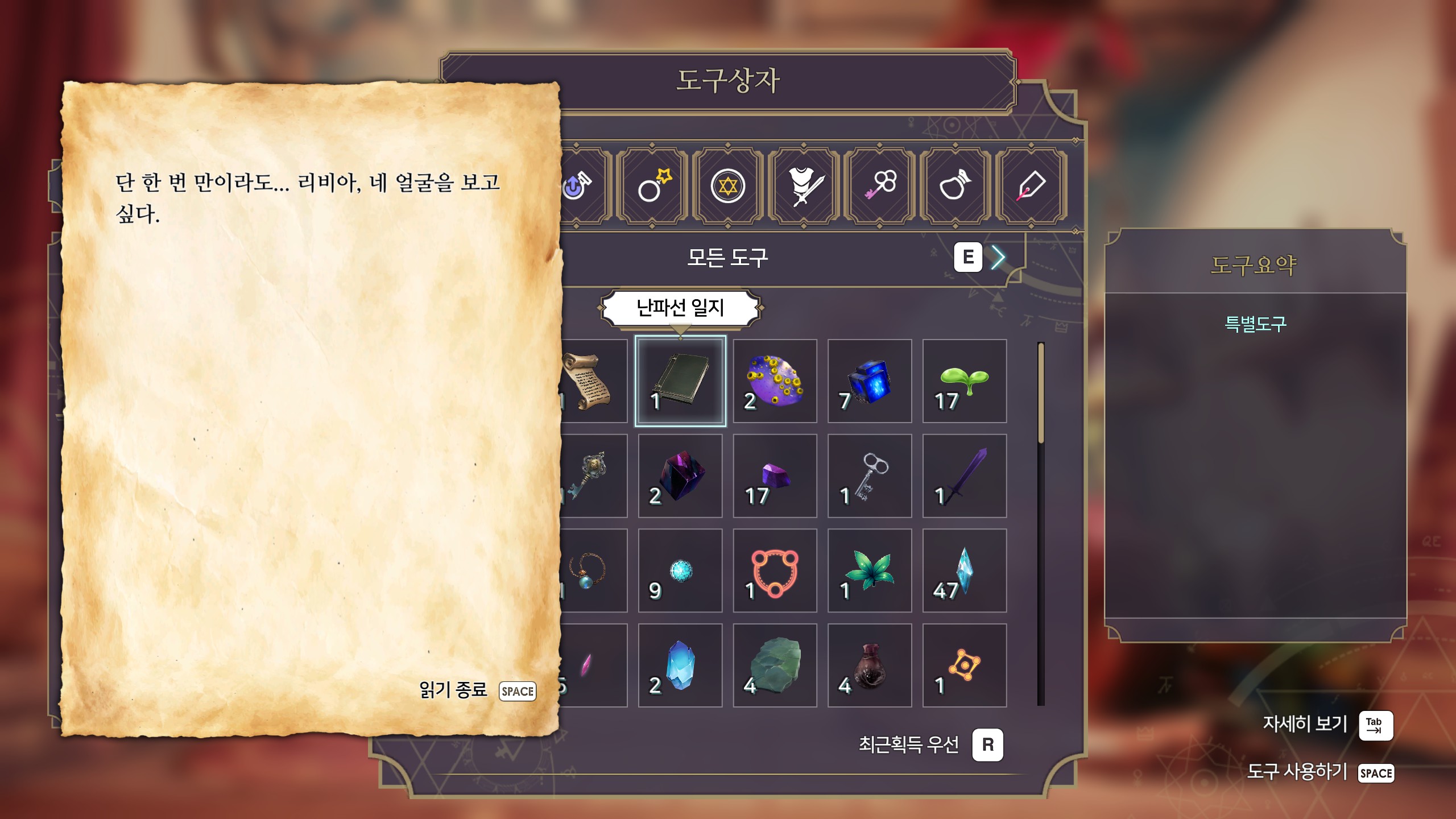 - 이외 서브퀘스트에 대한 힌트가 잘 주어지지 않았고(있다는 사실 자체를 후반부에 알게 되었다;) 특정 시점을 넘어가면 퀘스트 전체가 날아가버리는 일이 잦았다. 조금 더 친절하면 좋을 것 같다.
