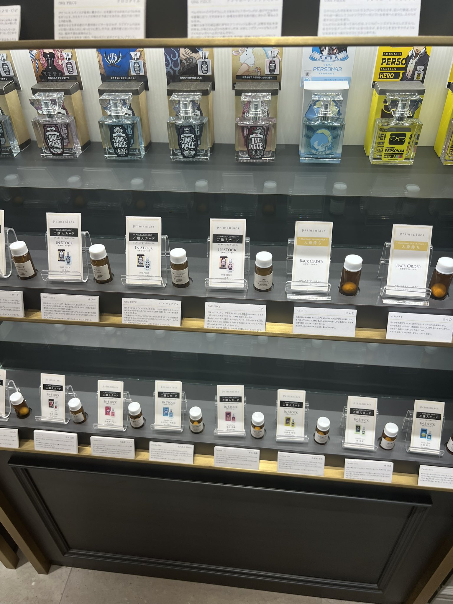 이외에는 긴자의 primaniacs에 가서 페르소나4 주인공 향수와 페5 조커 향수를 샀다. 페4주 향수는 시트러스 향이 주되어서 여름에 쓰기 좋은데, 조커 향수는 머스크 향이 있는 남자 향수라 겨울에 써야할 것 같다. 안타깝게도 페3주 향수는 당시 품절이라 사지 못했다.... 지금은 구매할 수 있는 듯하다.