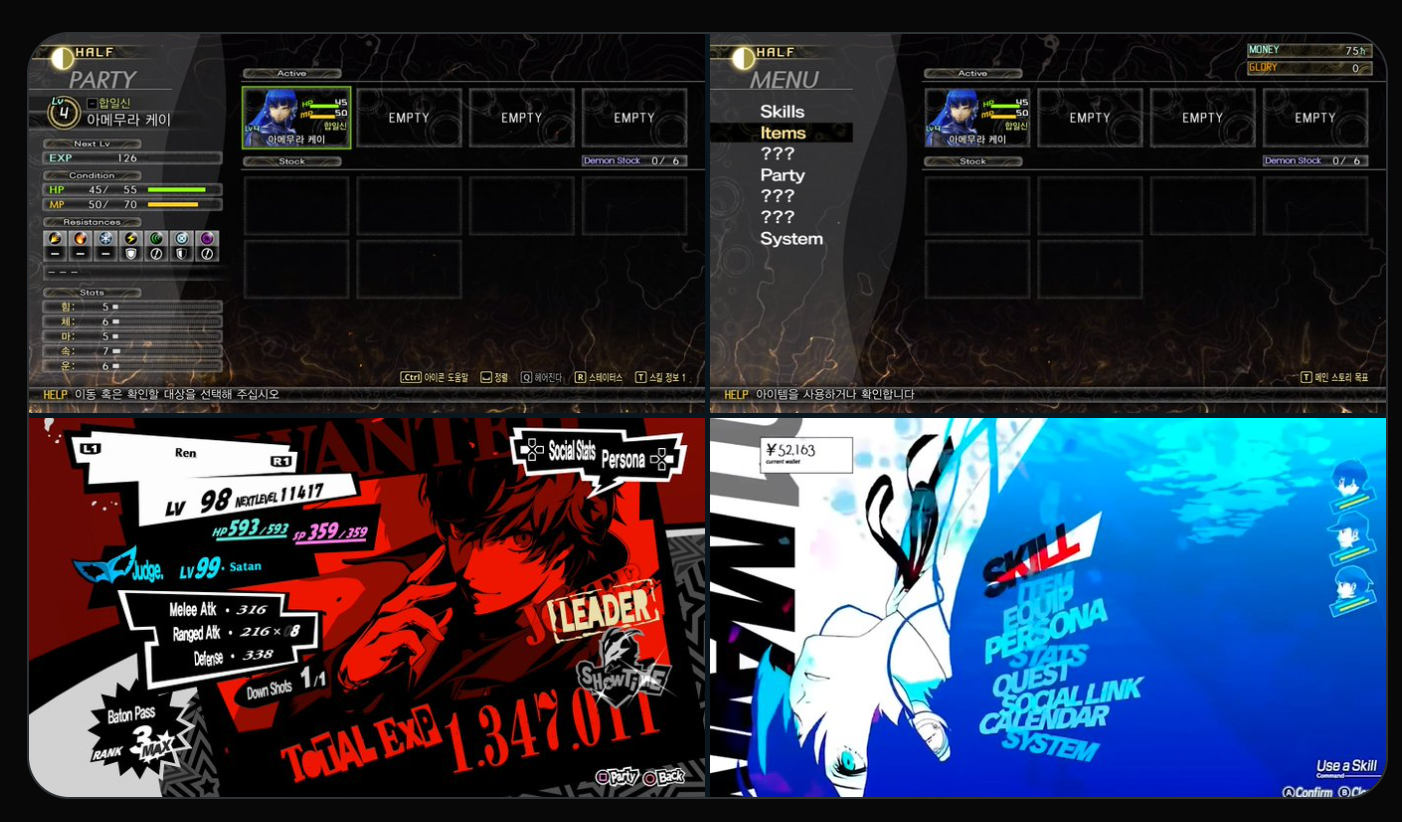 페르소나를 통해 악마들과 시스템에 대한 기본 지식이 있는 상태임에도 불구하고 초반에 UI 때문에 정말 고생했다. 아예 창들이 이해가 안 됐다.처음에는 악마들이 많으니까 그럴 수 있지...라고 생각했지만 페르소나도 동일하지 않았나? 아니, 적어도 좀 예쁘게 만들 수는 없었나?