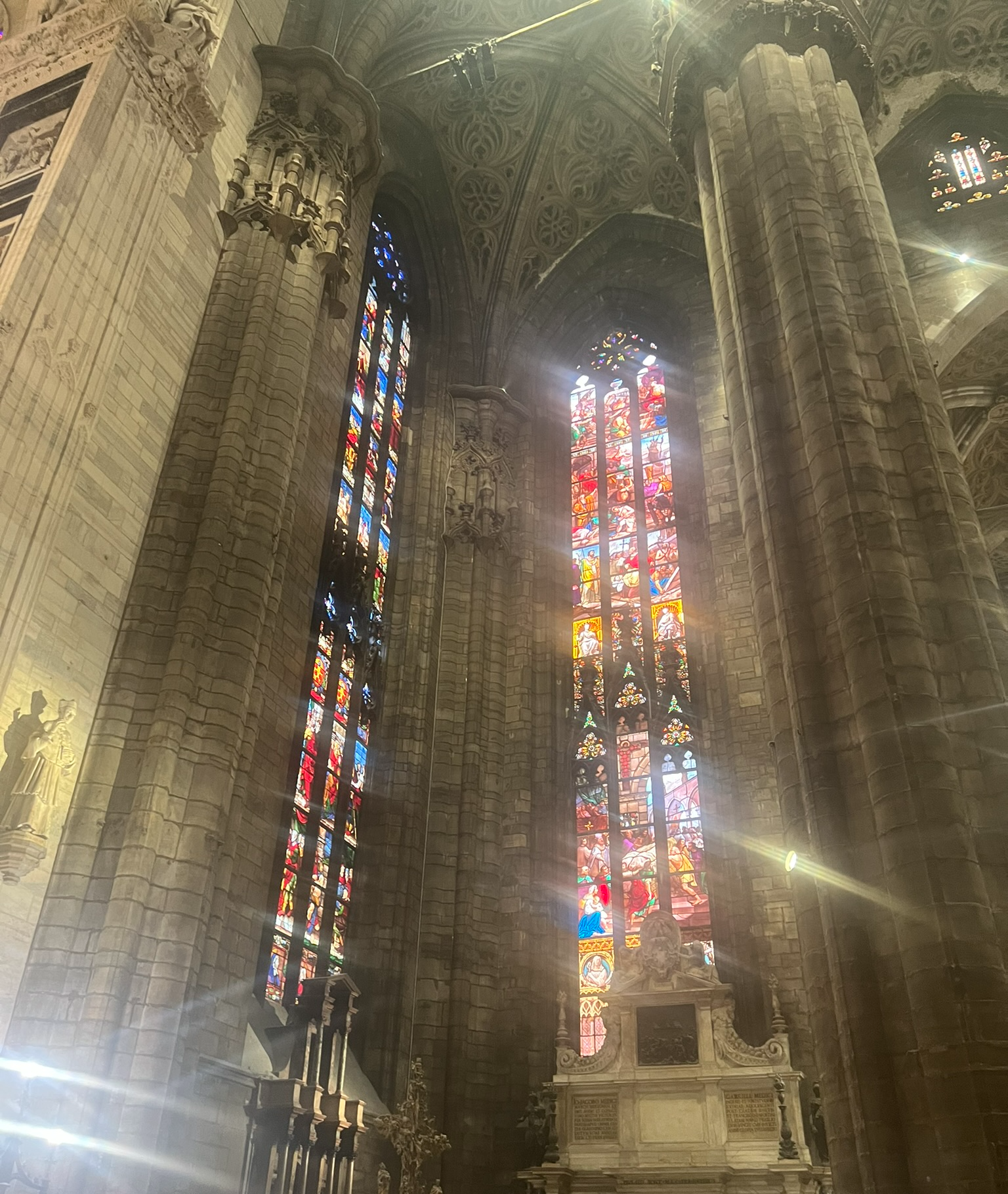 일반 티켓이 아니라 5만원 정도 주고 패스트 티켓을 사고 엘레베이터를 타고 올라갔다. 지금 돌이켜보면 매우 잘한 짓이었다고 생각한다. 성당이 워낙 크고 계단이 많아서 생각보다 많이 걸어야한다. 굳이 기운 뺄 이유는 없다. 밀라노 성당 위에 굳이 올라갈 필요가 있나 싶은 분들도 계시겠지만 10월 당시 옥상이 공사 중이었음에도 불구하고 예술가들의 변태적 집념에 혀를 내둘렀다. 밀라노 대성당의 꽃은 오히려 옥상에 있으며, 특히 예술가 차력쇼를 보고 싶으신 분들은 당연히 위로 올라가야 한다.