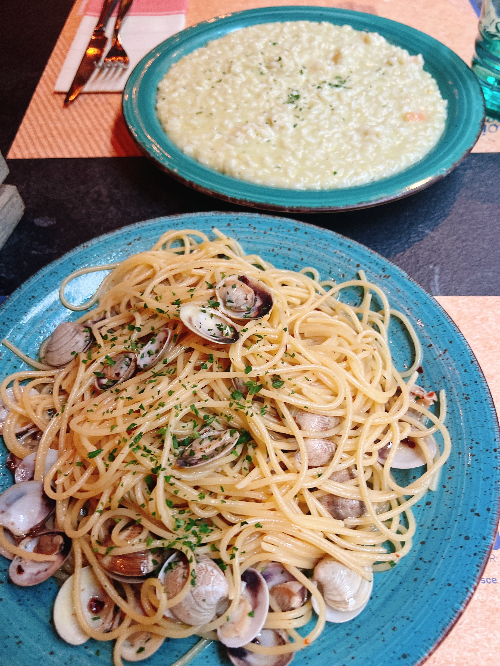 메인은 봉골레와 리조또. 양이 어마무시하게 많았고, 맛있었다. 알려진 것처럼 이탈리아의 리조또는 전반적으로 한국보다 덜 익힌 식감이었지만, 쌀이면 다 좋아하는 나는 맛있게 먹었다. 라면으로 치면 꼬들면 같은 느낌이다.