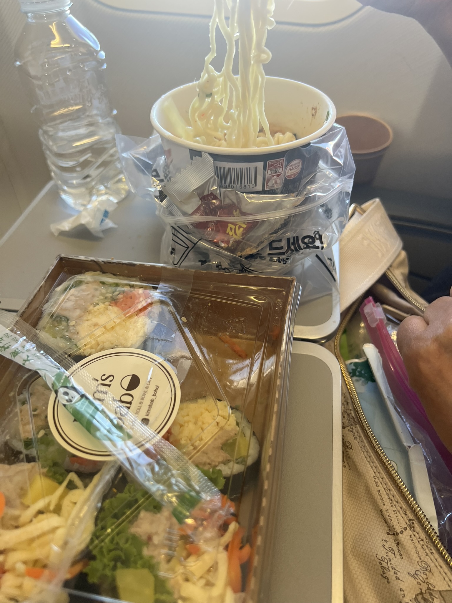 어머니는 건강의 이유 상 꼭 정해진 시간에 식사를 하셔야했기에 기내식을 유료 신청했으나 맛은 그렇게 좋지 않았다. 돌아오는 비행기에서는 기내식을 신청하지 않았는데, 맙소사. 주전부리를 먹느라 그 돈이 그 돈이었다.