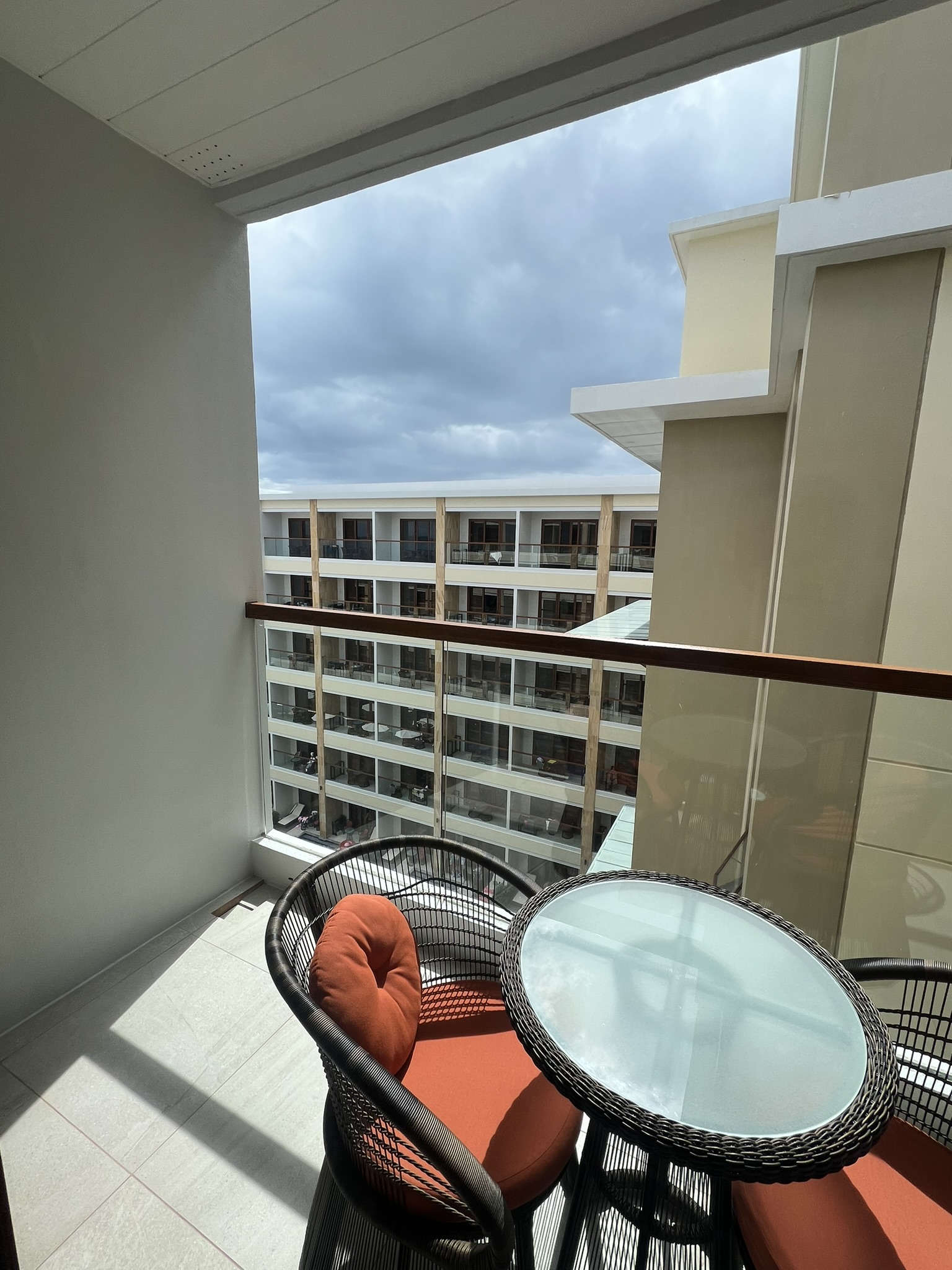 다만 좀 싼 방으로 했더니 베란다 뷰가 망함... 게다가 ㄷ자로 서로 마주보는 구조기까지 해서 베란다는 옷 말리는 것 용도 외 거의 쓰지 않았다. 복도 뷰로는 아모리타 리조트가 보였는데 밤에 전통 공연을 하는 게 재밌어보였다. 아쉽게도 외부인은 출입 금지였다.