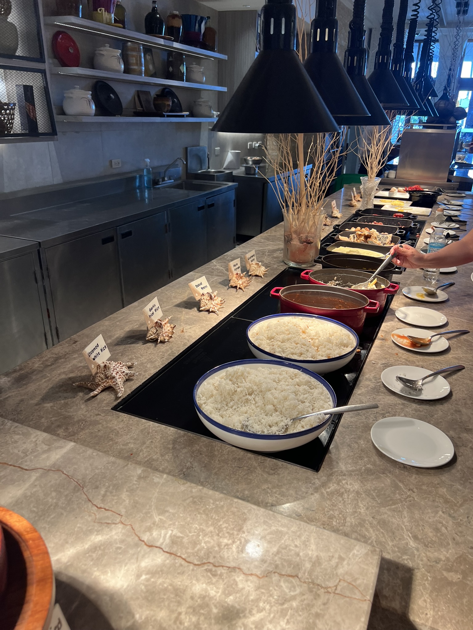 헤난 조식에 대해서 '가짓수는 많지만 먹을 것이 없다'는 평이 많아서 의외였다. 실제로 보니 한식도 꽤 있어보였거든. 그런데 이틀 정도 지나니 무슨 의미인지 알 것 같았다. 한식과 컨티넨탈, 필리핀 식이 각 33% 정도를 차지하다보니 한식과 양식을 선호하는 사람들에게는 2/3만 먹을 게 있는 것이다. 그리고 그 한식이 진짜 한식이 아니기도 하고. 필리핀 식 중에는 한국 사람 입맛에 안 맞는 것이 꽤 있었다. 특히 나 같은 경우는 고기가 조금 어려웠다....