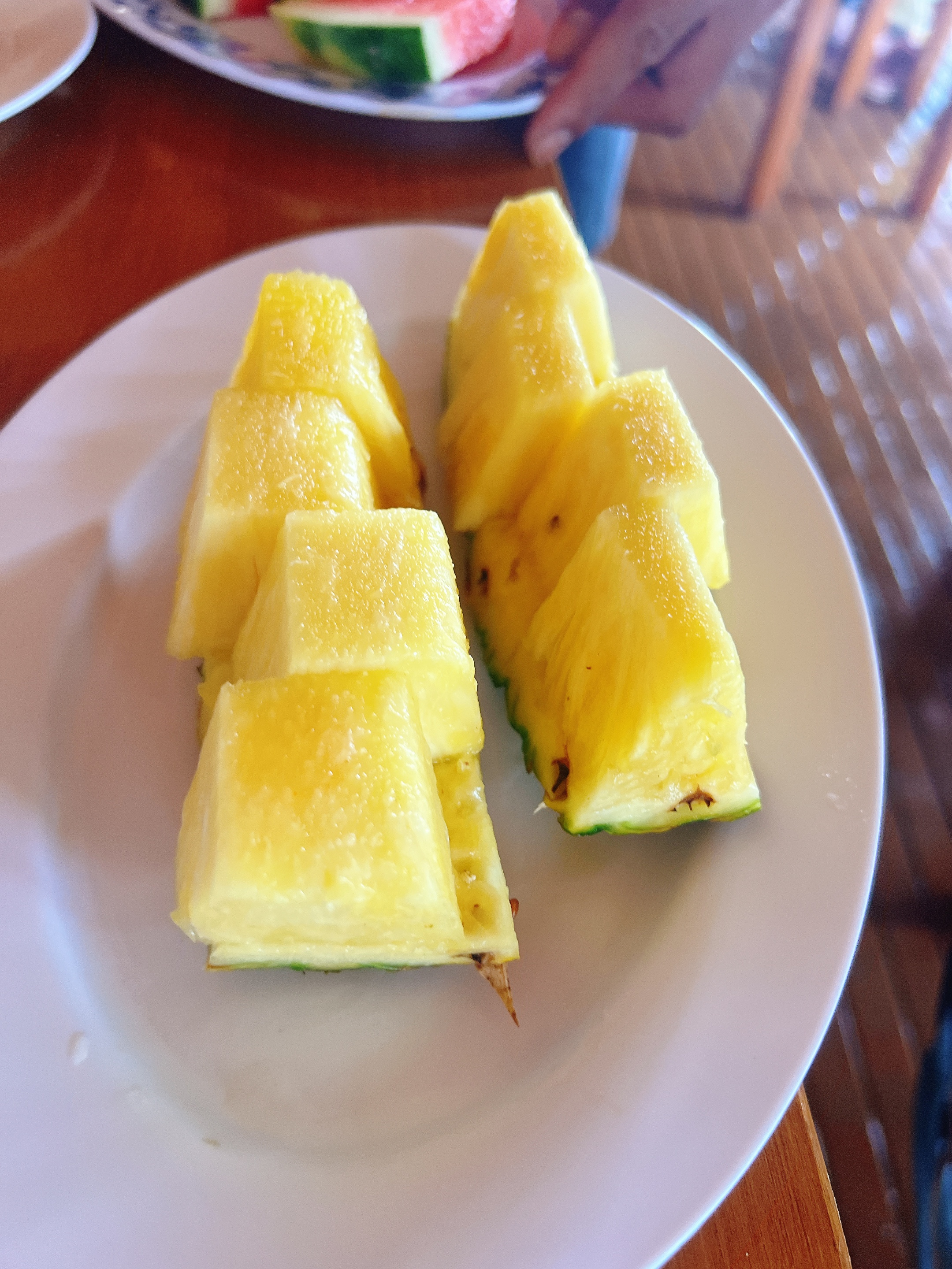 돌아오는 길에 먹은 점심. 바베큐는 예쁘지만 식어있어서 조금 아쉬웠다. 과일과 물은 무제한. 오후에 비가 온다던데 바람이 역으로 강해져서 사람들이 좀 멀미를 하며 많이 먹지 못했다.