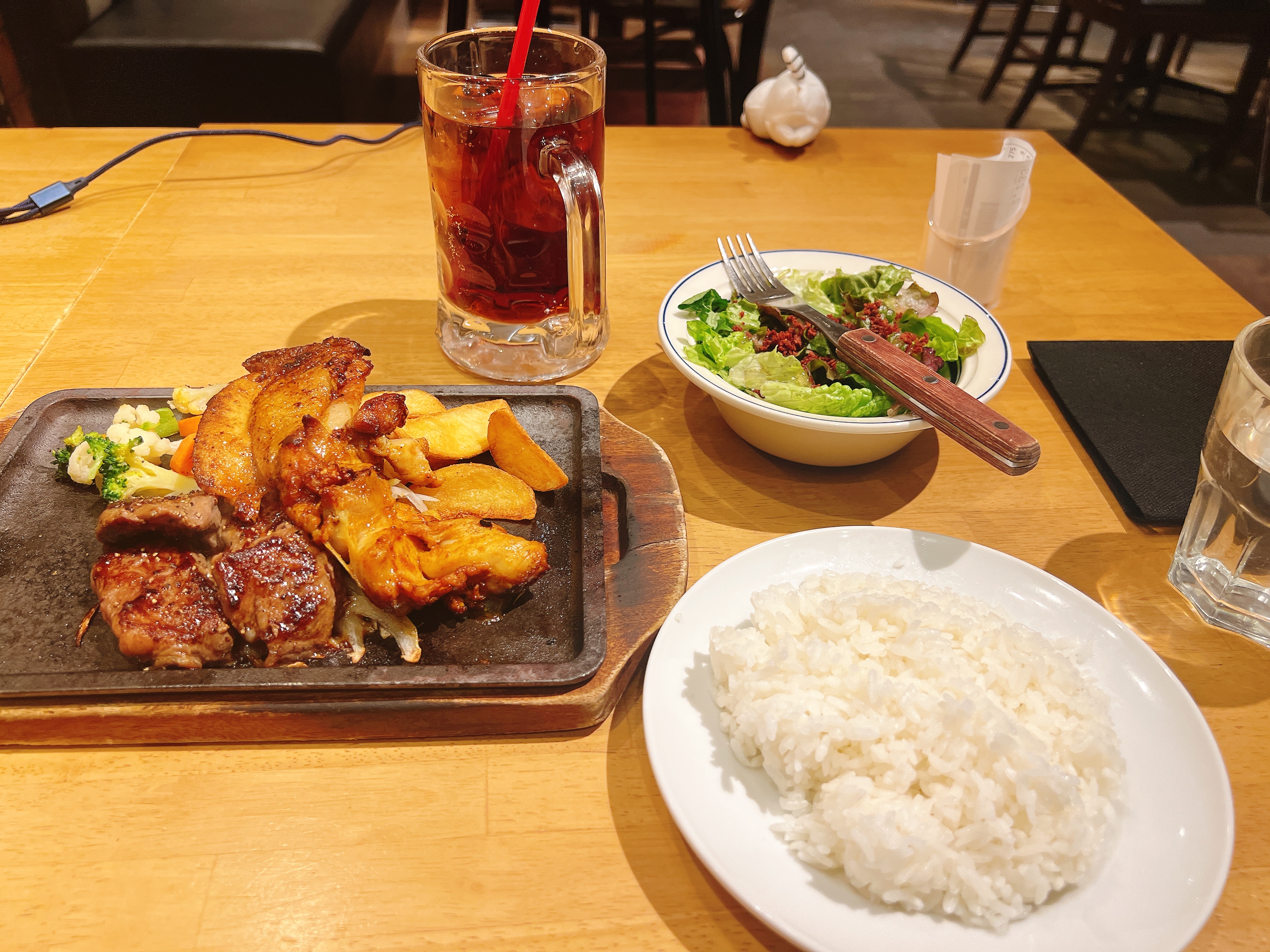 구글 평점이 좋아서 먹었던 일본식 스테이크집. 조금 짰지만 몸에 좋은 구성이고 양도 넉넉한 편. 놀이동산 쪽 음식점 치곤 나쁘지 않았다고 생각한다.