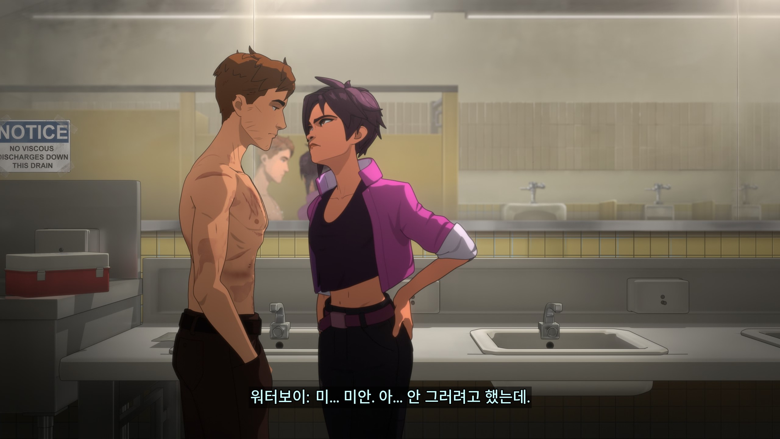 그 이후 팀 빌딩을 하는 에피소드 4-6까지의 흐름이 정말 즐거웠어서 슈퍼히어로들의 왁자지껄한 티키타카를 좋아하시는 분들은 꼭 해보시라고 권하고 싶다. 특히 에피소드 8의 전투 연출은 아주 좋았다. 클라이막스(히어로들이 비겁하게 다구리 하는 씬)을 팀의 특색에 잘 맞춰서 정신없는 와중 잘 시각화했다. 개인적으로 스토리가 엄청 뛰어나다기보단 좋은 연출과 진행으로 드라마를 끌고 나갔다고 생각한다.