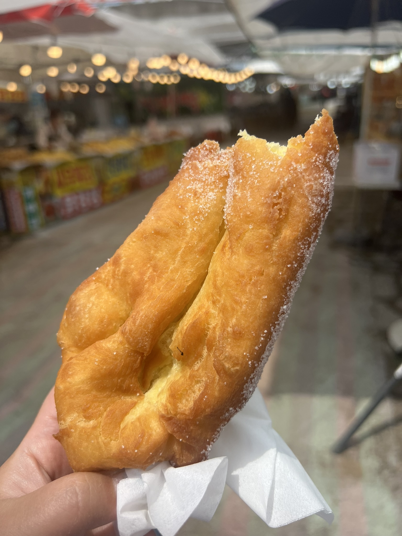 외부업체들로 채워진 시장을 먼저 지나게 되었는데 거대한 도너츠가 눈에 띄었다. 하나를 샀는데 4등분을 해야 할 정도로 컸다! 맛은 그냥 갓 튀겨 맛있는 도너츠맛.