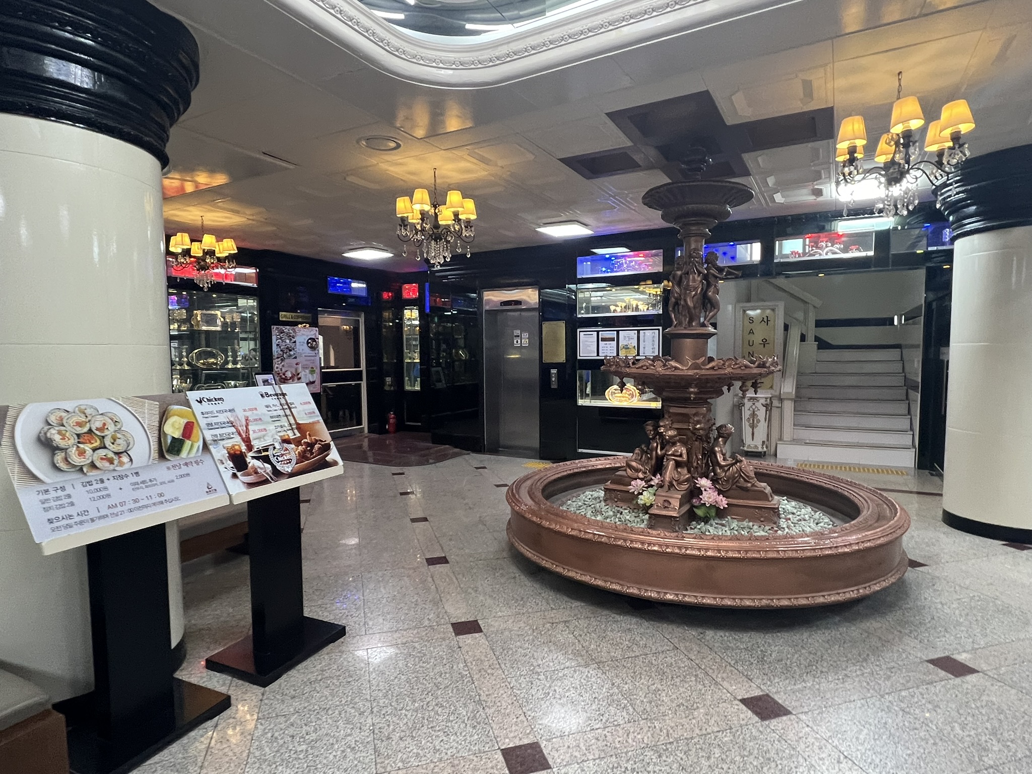 이번 여행의 또다른 거대 도파민, 바로 대순진리교에서 분리된 대진성주회? 라는 곳이 운영하는 가야호텔이다. 웹상에서 봤을 때는 진짜 웃겨 보였다. 80년대를 방불케 하는 호텔 인테리어, 사람은 하나도 없어 보이는 기묘한 호텔. 김전일 보면 이런 호텔 들어갔다가 아무도 못 나오고 몰살당하던데. 가격도 저렴하고 도파민도 얻을 겸 방도 하나가 아니라 1인실 두 개를 예약했다.