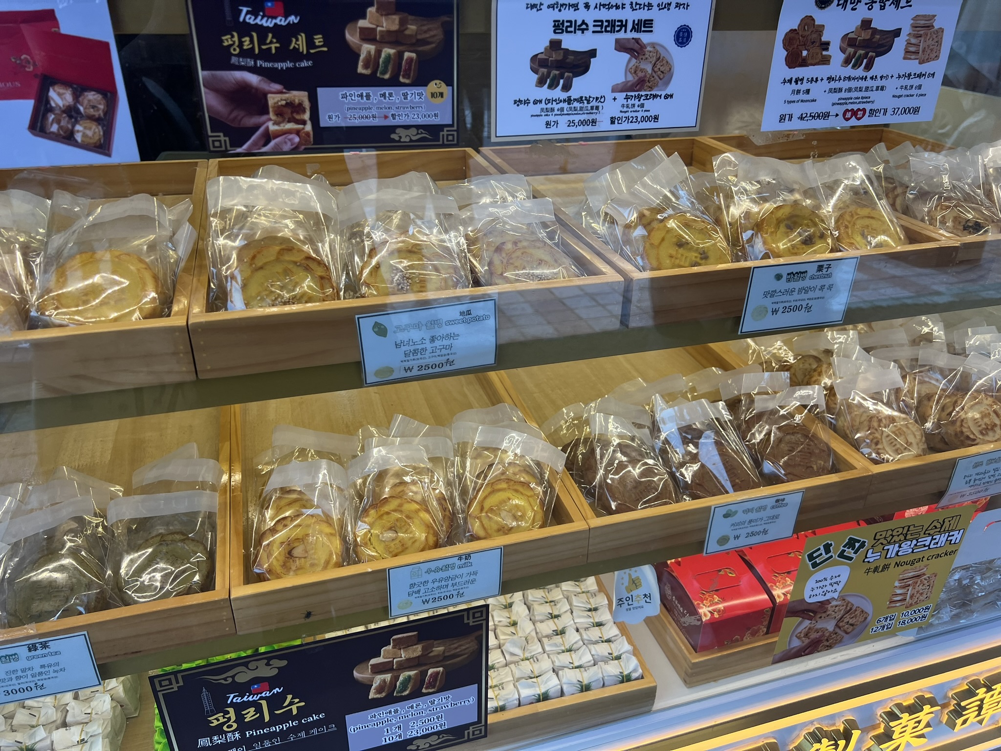 중국과자담과 구구만다복은 서로 앞집인 경쟁 업체. 어디가 취향일지 궁금해서 두 곳에서 비슷한 종류를 사봤다. 참고로 중국제과담의 경우 먹을 공간은 없고, 판매하시는 분이 한국어를 아주 잘하시지는 않는다. 알아서 잘 알아들어야 한다.
