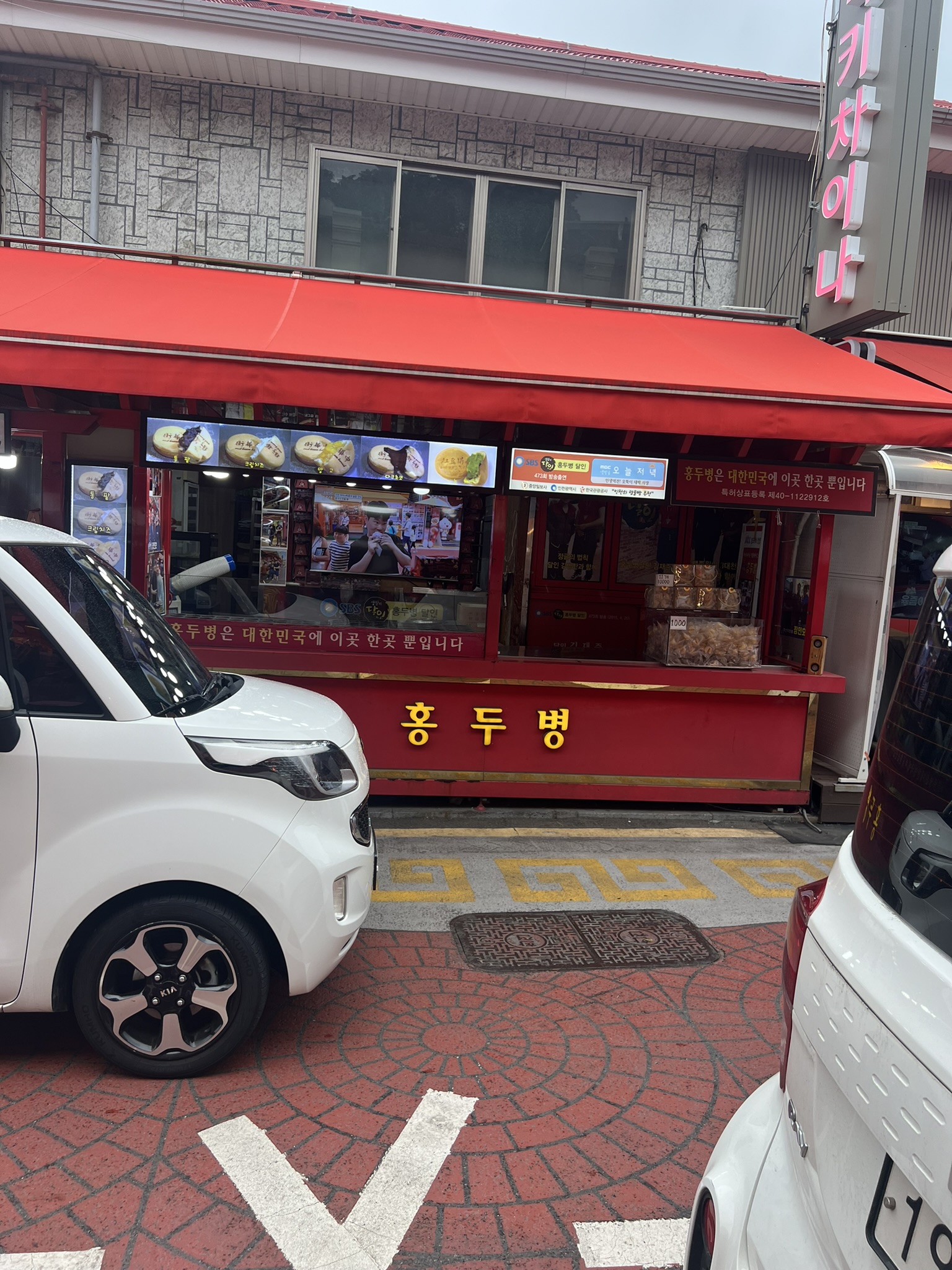 이제부터는 길거리 음식 시작! 걸으면서 찍었더니 초점이 나갔다.
